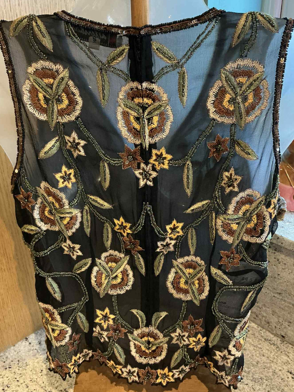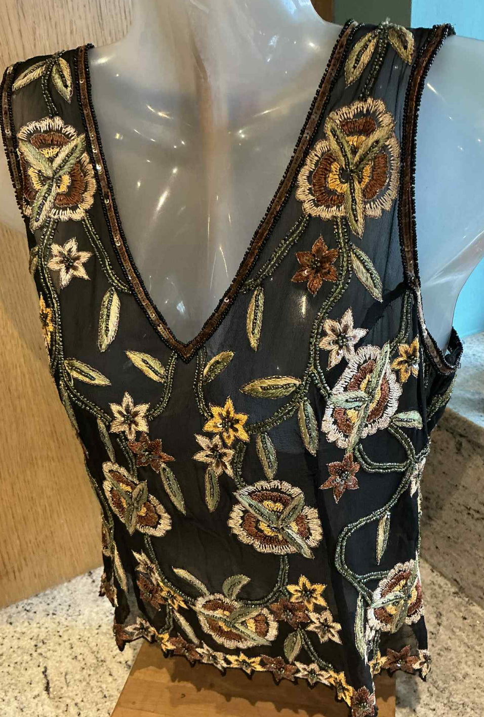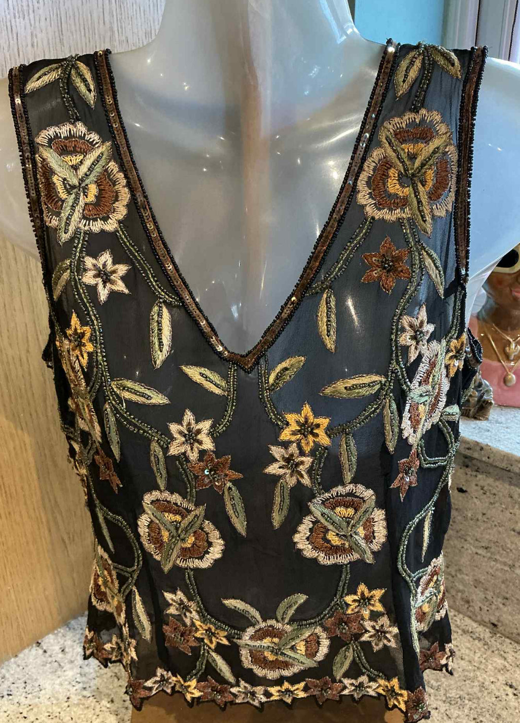 This vintage tea top is a true work of art, featuring intricate beadwork that adds a touch of elegance and sophistication to its unique design. Carefully crafted with attention to detail, the beadwork is delicate yet striking, creating a captivating texture that enhances its overall charm. Its distinctive design sets it apart from modern pieces, making it a one-of-a-kind addition to any wardrobe. Perfect for those who appreciate the beauty of craftsmanship and timeless style, this tea top is a stunning blend of tradition and luxury. Whether worn for a special occasion or as a statement piece, it’s sure to draw admiration and become a cherished part of your collection.