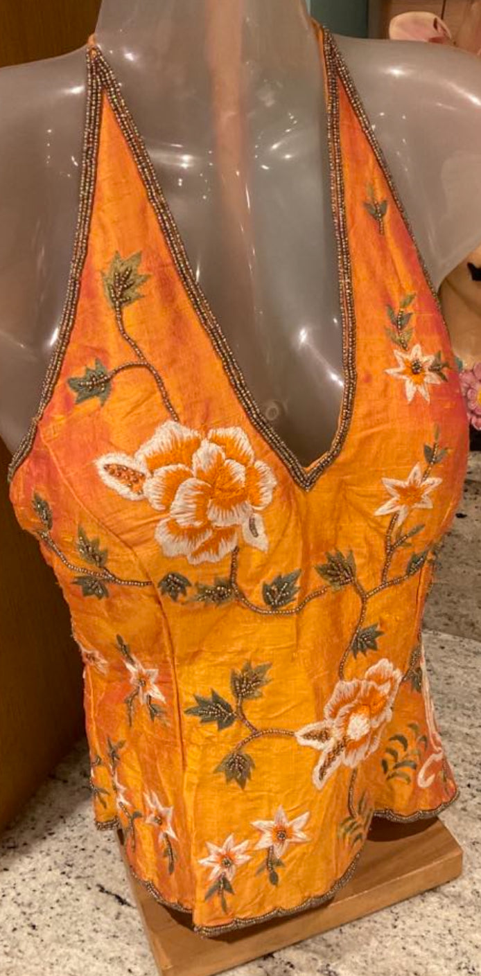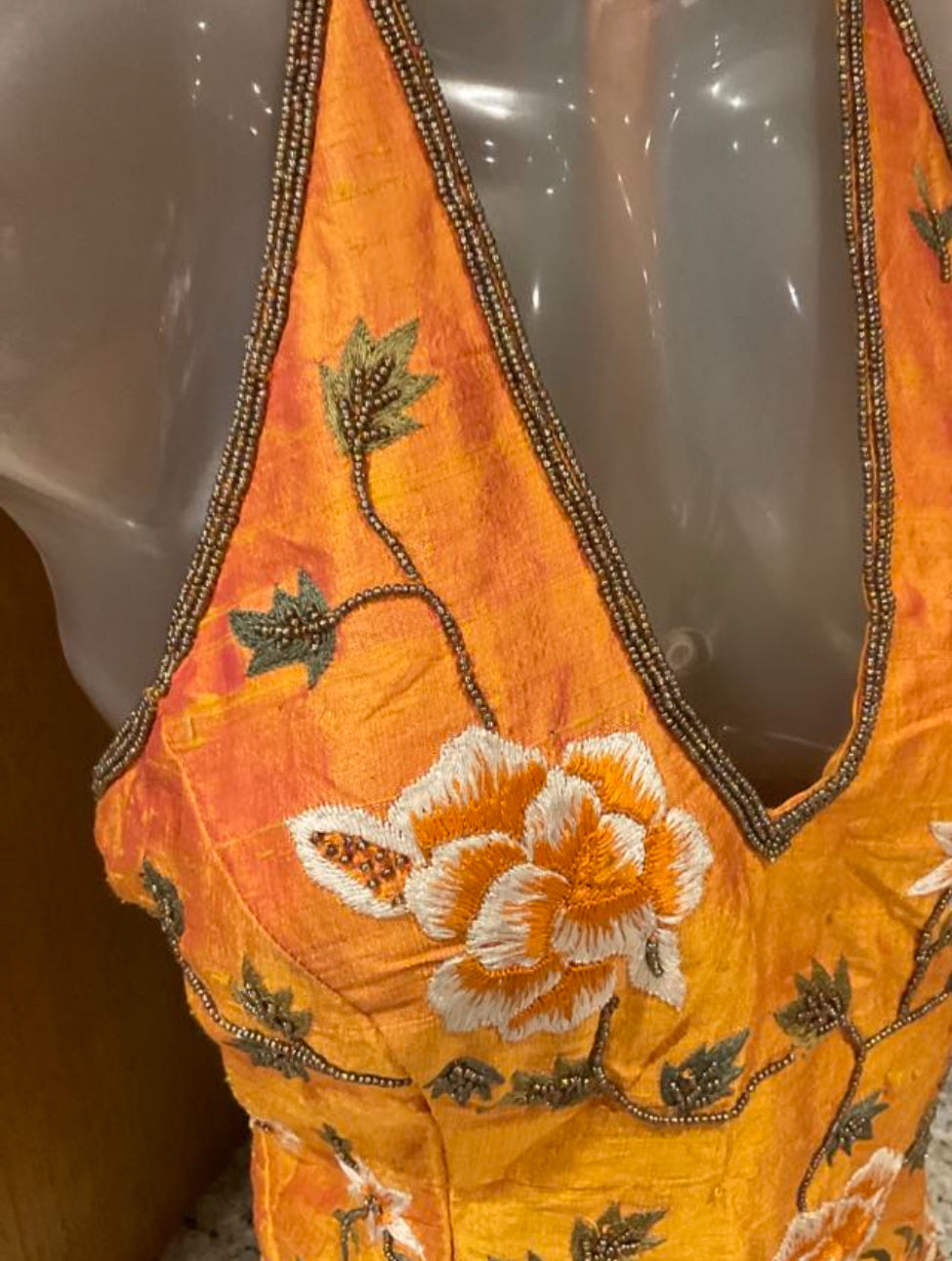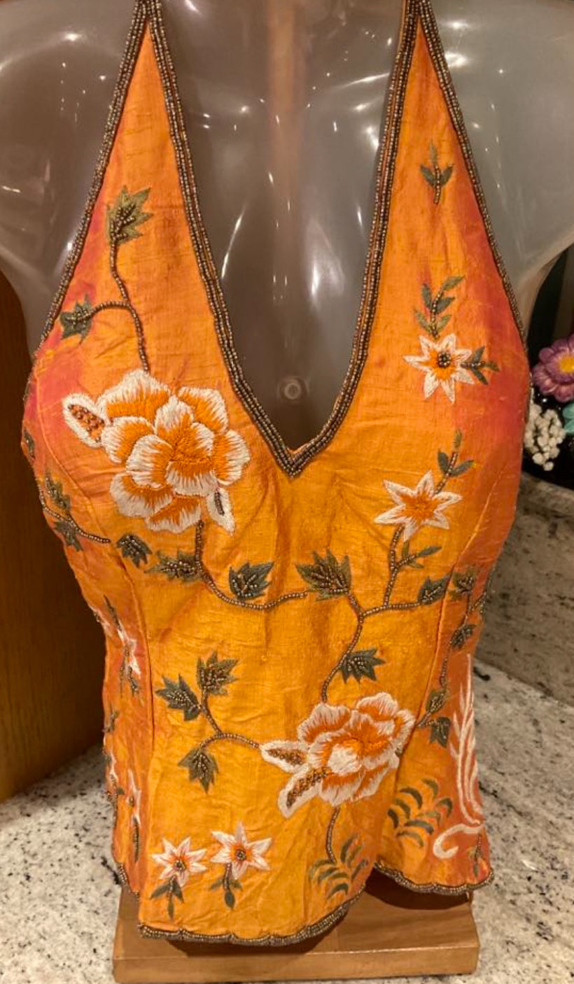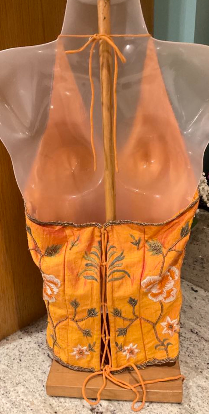This one-of-a-kind bustier top is a true standout piece, with no other like it in our collection. Crafted with exquisite full embellishment, each detail has been thoughtfully designed to create a bold and unique look. The adjustable tie-back allows you to contour the top to the shape of your body, ensuring a flattering fit that enhances your natural curves. Its rarity and striking design make it a must-have for those who appreciate exclusive, statement-making fashion. Wear it to turn heads and add a touch of timeless elegance to any occasion.