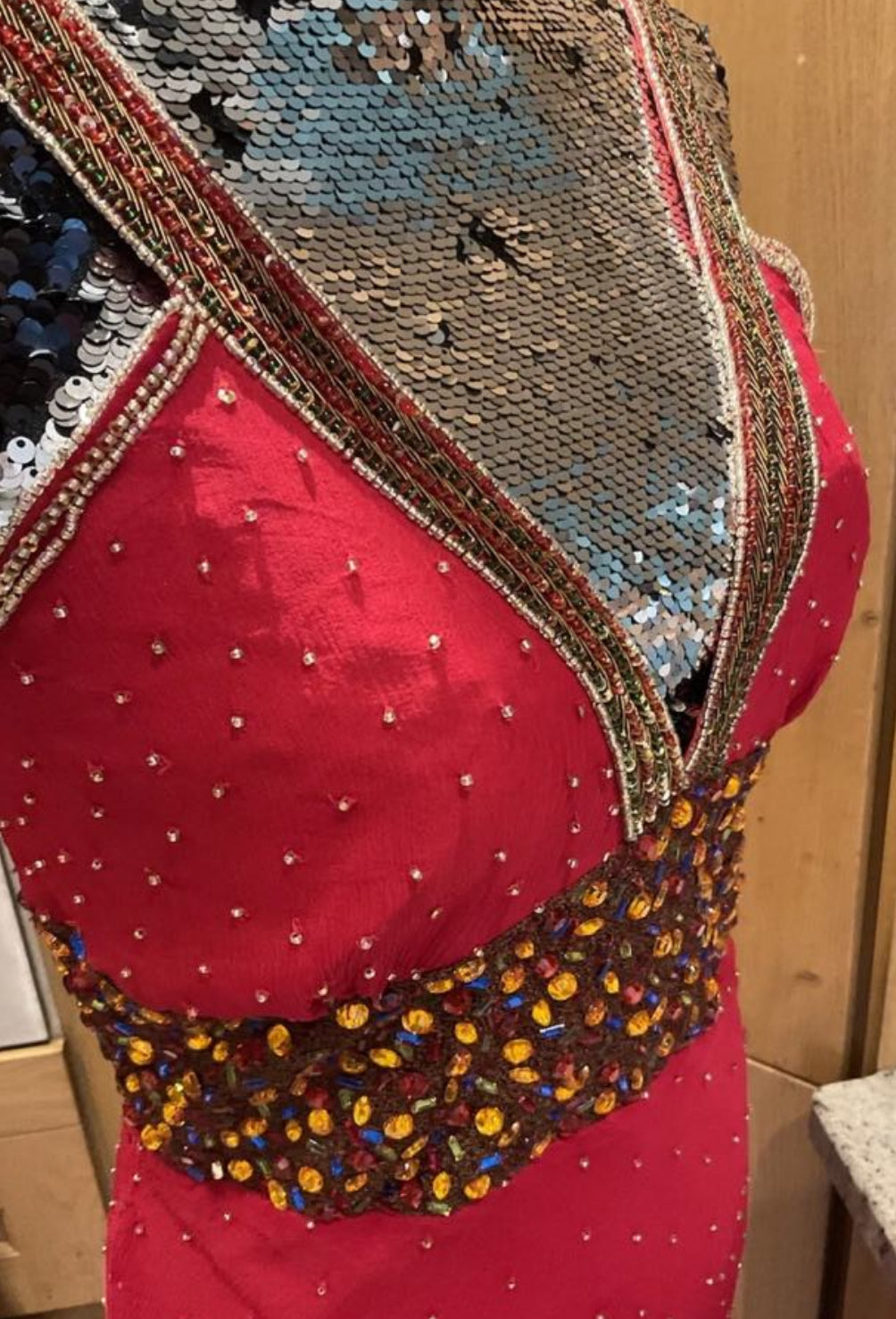 This vintage dress is a true work of art, featuring breathtaking designs and intricate embellishments that set it apart. Every detail has been carefully crafted, with stunning embellishments that shimmer and shine, adding a touch of glamour and sophistication. The captivating design flows gracefully, creating a flattering silhouette that exudes timeless elegance. Whether you're attending a special event or simply seeking to add a unique piece to your wardrobe, this vintage dress is the perfect choice for those who appreciate the beauty of craftsmanship and the allure of a one-of-a-kind style.