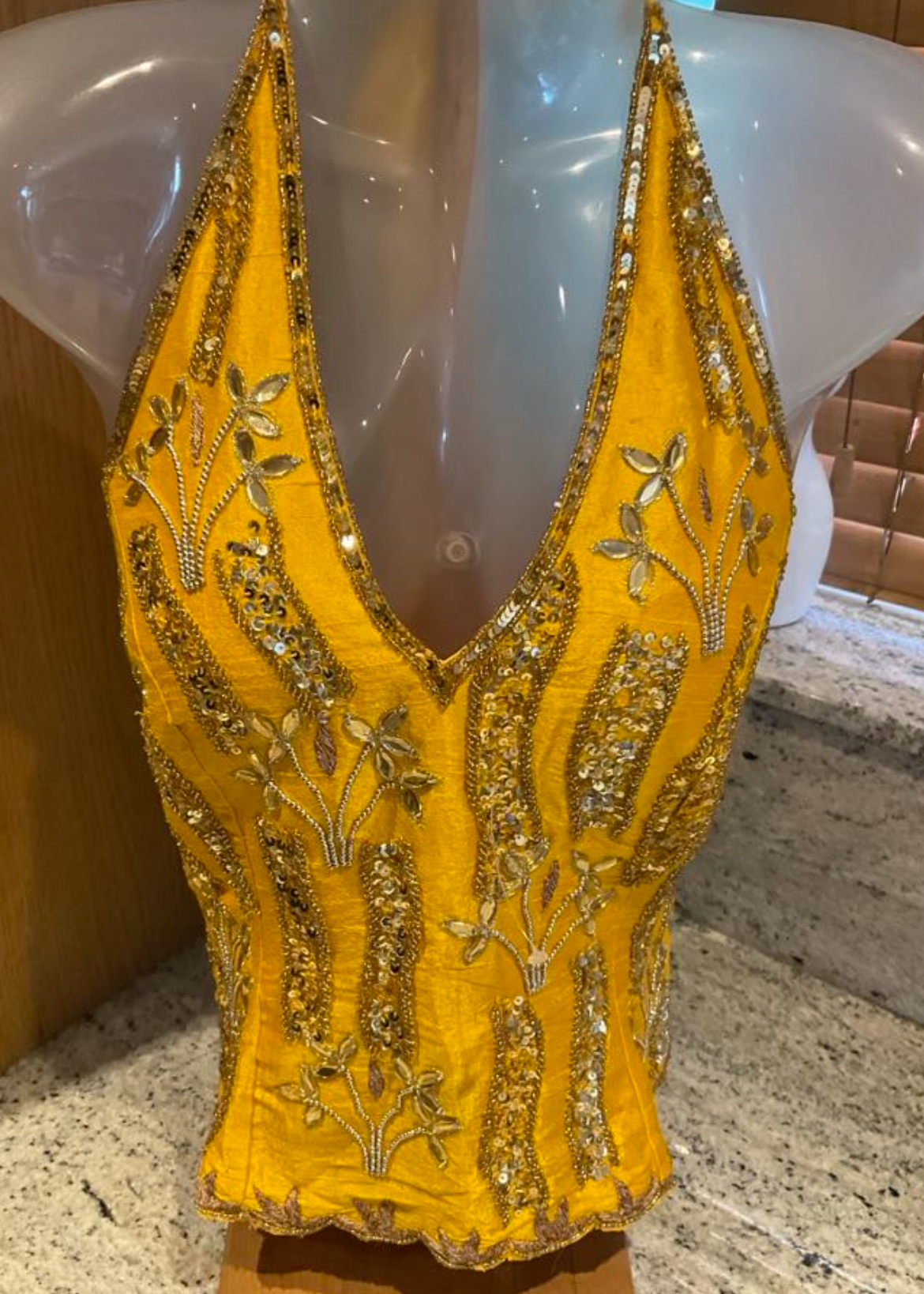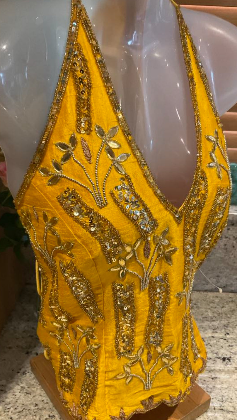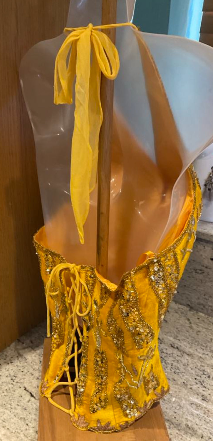 This one-of-a-kind bustier top is a true standout piece, with no other like it in our collection. Crafted with exquisite full embellishment, each detail has been thoughtfully designed to create a bold and unique look. The adjustable tie-back allows you to contour the top to the shape of your body, ensuring a flattering fit that enhances your natural curves. Its rarity and striking design make it a must-have for those who appreciate exclusive, statement-making fashion. Wear it to turn heads and add a touch of timeless elegance to any occasion.