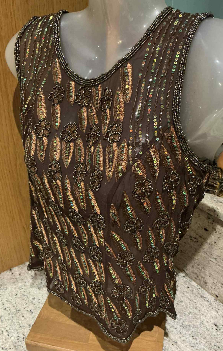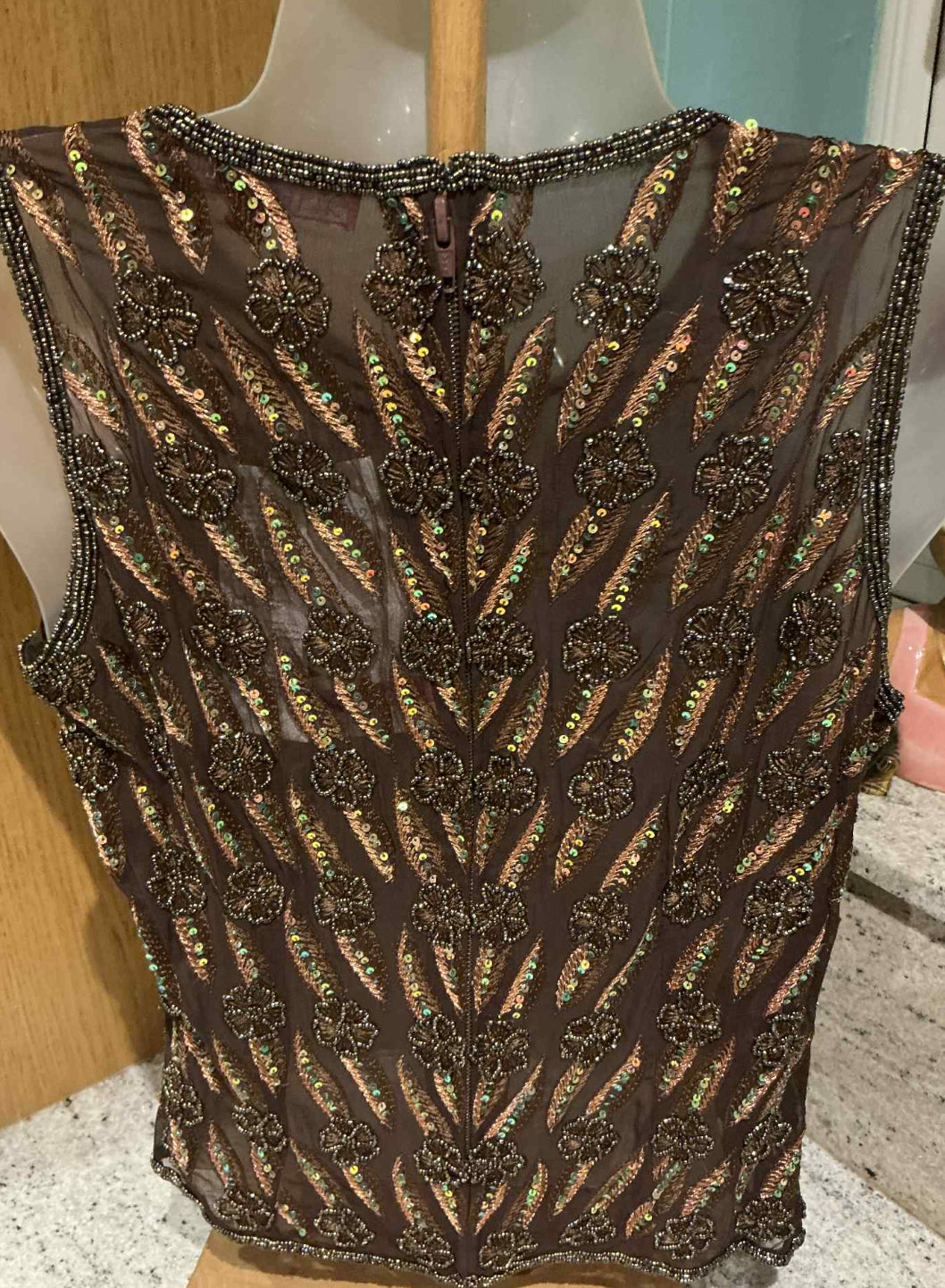 This vintage tea top is a true work of art, featuring intricate beadwork that adds a touch of elegance and sophistication to its unique design. Carefully crafted with attention to detail, the beadwork is delicate yet striking, creating a captivating texture that enhances its overall charm. Its distinctive design sets it apart from modern pieces, making it a one-of-a-kind addition to any wardrobe. Perfect for those who appreciate the beauty of craftsmanship and timeless style, this tea top is a stunning blend of tradition and luxury. Whether worn for a special occasion or as a statement piece, it’s sure to draw admiration and become a cherished part of your collection.