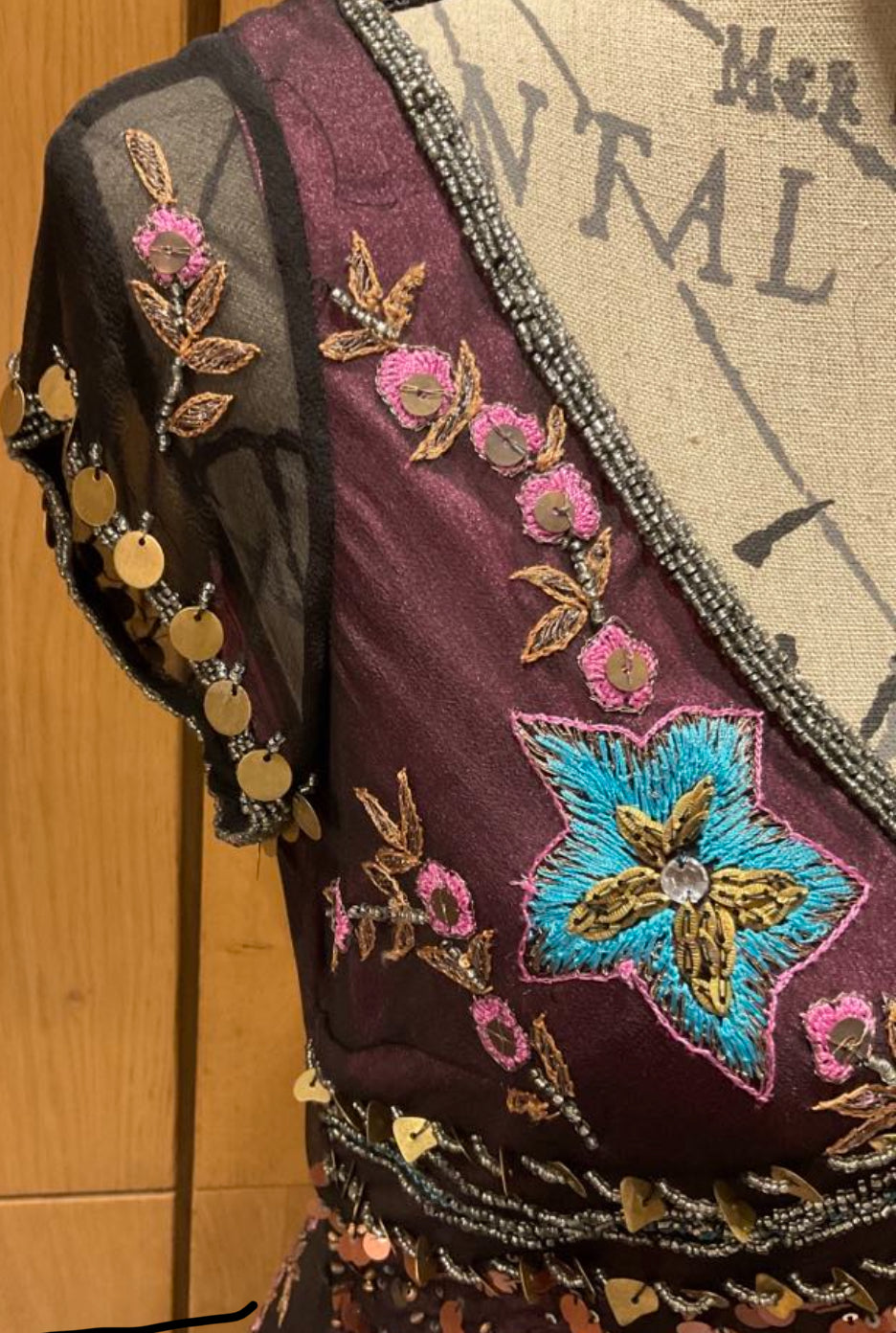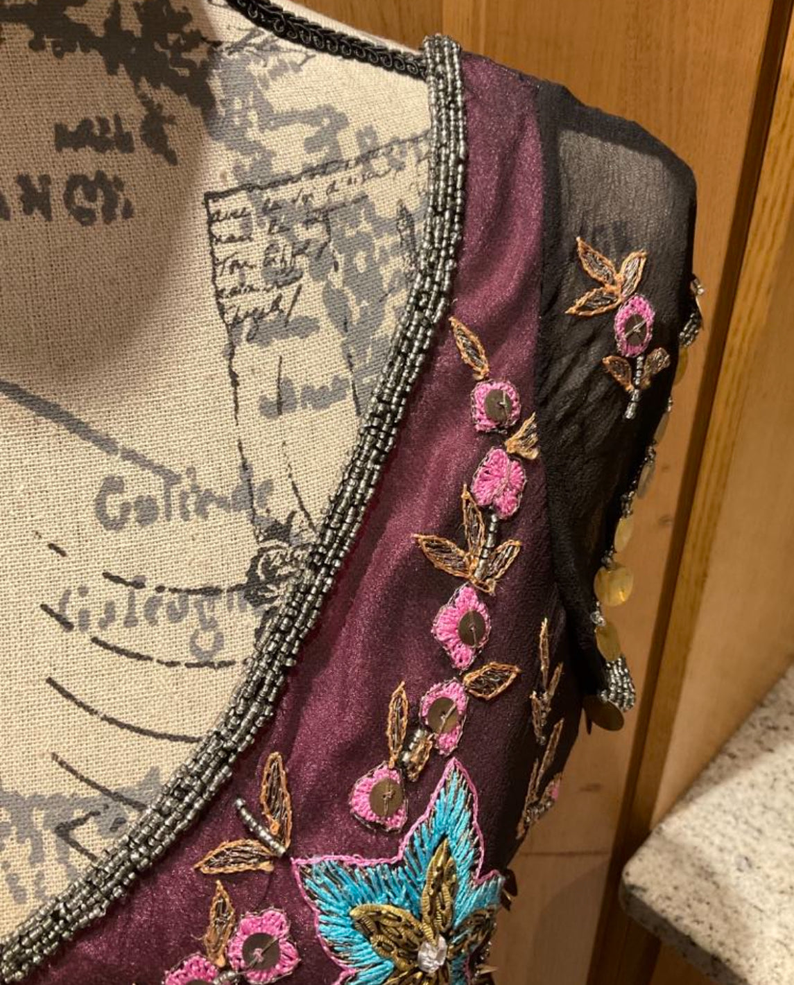 This vintage dress is a true work of art, featuring breathtaking designs and intricate embellishments that set it apart. Every detail has been carefully crafted, with stunning embellishments that shimmer and shine, adding a touch of glamour and sophistication. The captivating design flows gracefully, creating a flattering silhouette that exudes timeless elegance. Whether you're attending a special event or simply seeking to add a unique piece to your wardrobe, this vintage dress is the perfect choice for those who appreciate the beauty of craftsmanship and the allure of a one-of-a-kind style.