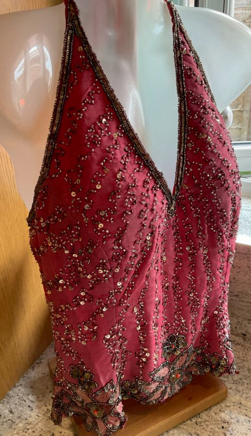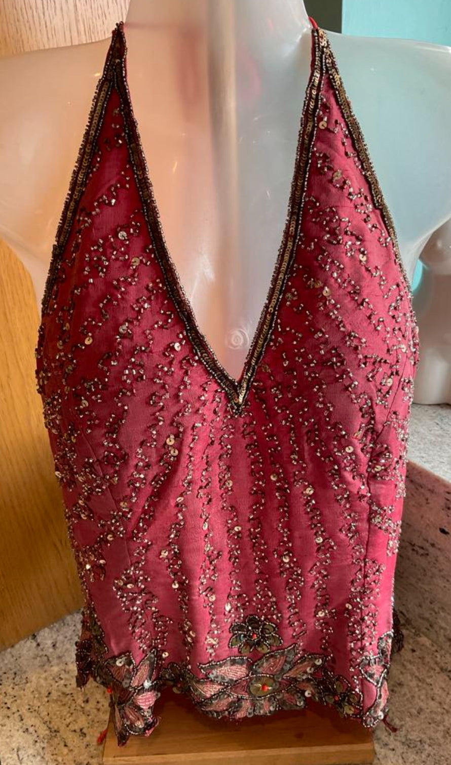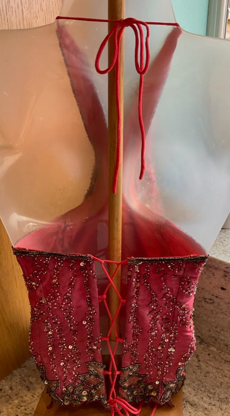 This one-of-a-kind bustier top is a true standout piece, with no other like it in our collection. Crafted with exquisite full embellishment, each detail has been thoughtfully designed to create a bold and unique look. The adjustable tie-back allows you to contour the top to the shape of your body, ensuring a flattering fit that enhances your natural curves. Its rarity and striking design make it a must-have for those who appreciate exclusive, statement-making fashion. Wear it to turn heads and add a touch of timeless elegance to any occasion.