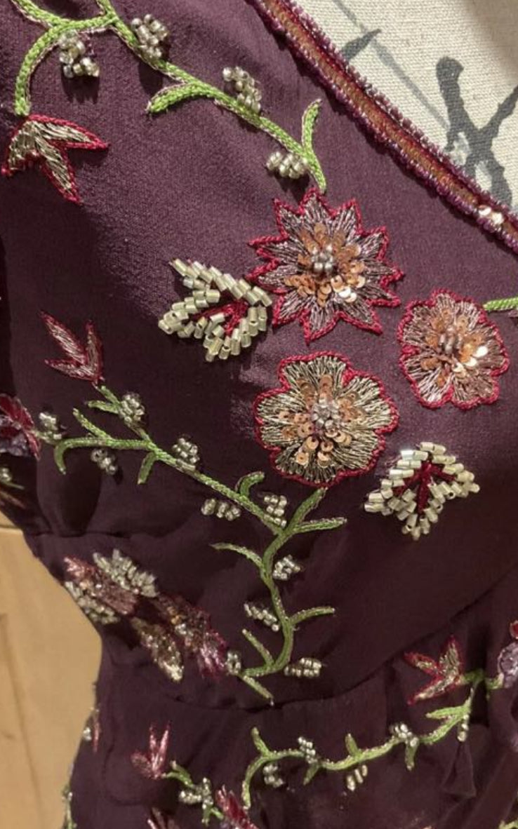 This vintage dress is a true work of art, featuring breathtaking designs and intricate embellishments that set it apart. Every detail has been carefully crafted, with stunning embellishments that shimmer and shine, adding a touch of glamour and sophistication. The captivating design flows gracefully, creating a flattering silhouette that exudes timeless elegance. Whether you're attending a special event or simply seeking to add a unique piece to your wardrobe, this vintage dress is the perfect choice for those who appreciate the beauty of craftsmanship and the allure of a one-of-a-kind style.