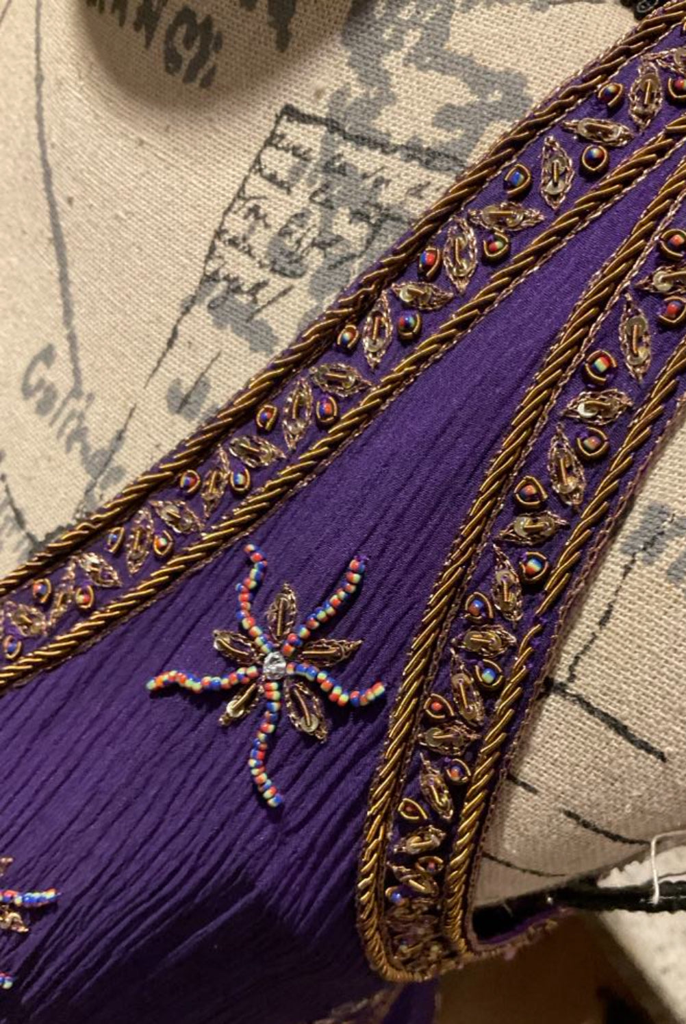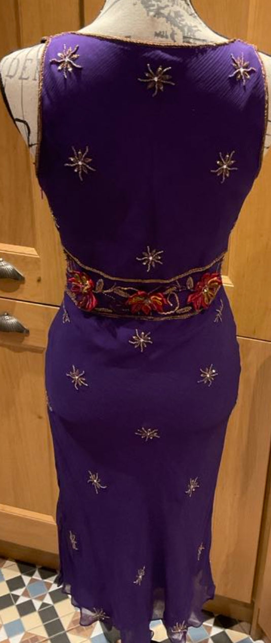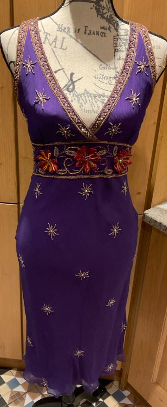 This one-of-a-kind vintage dress is a true statement piece, with no other like it in our collection. Adorned with full embellishments that catch the light and add a touch of glamour, every inch of this dress exudes elegance and individuality. Its unique design and craftsmanship ensure that it stands apart, making it a must-have for fashion lovers who appreciate rare, distinctive pieces. Perfect for making a memorable impression at any special occasion, this dress is as timeless as it is breathtaking